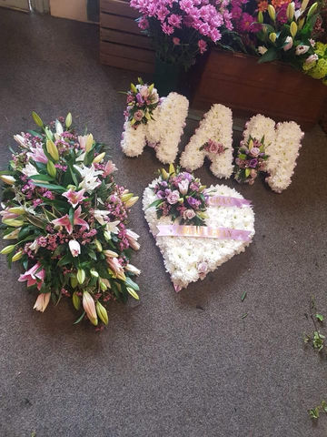 Tributes that looked best in a based style are; letters, hearts, pillows and cushions.